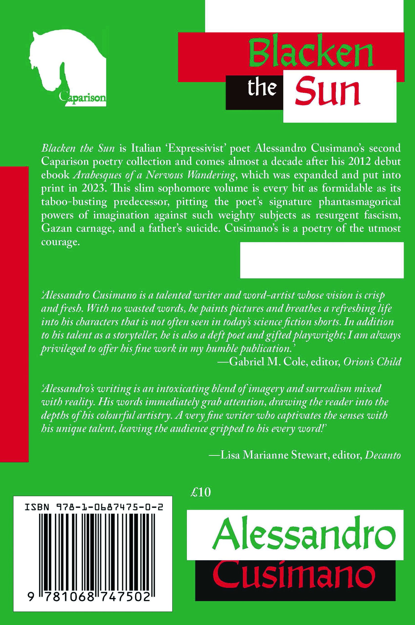 Italian ‘Expressivist’ poet Alessandro Cusimano’s second volume from Caparison, as devastating, visceral, visionary and imaginative as his taboo-busting debut.
