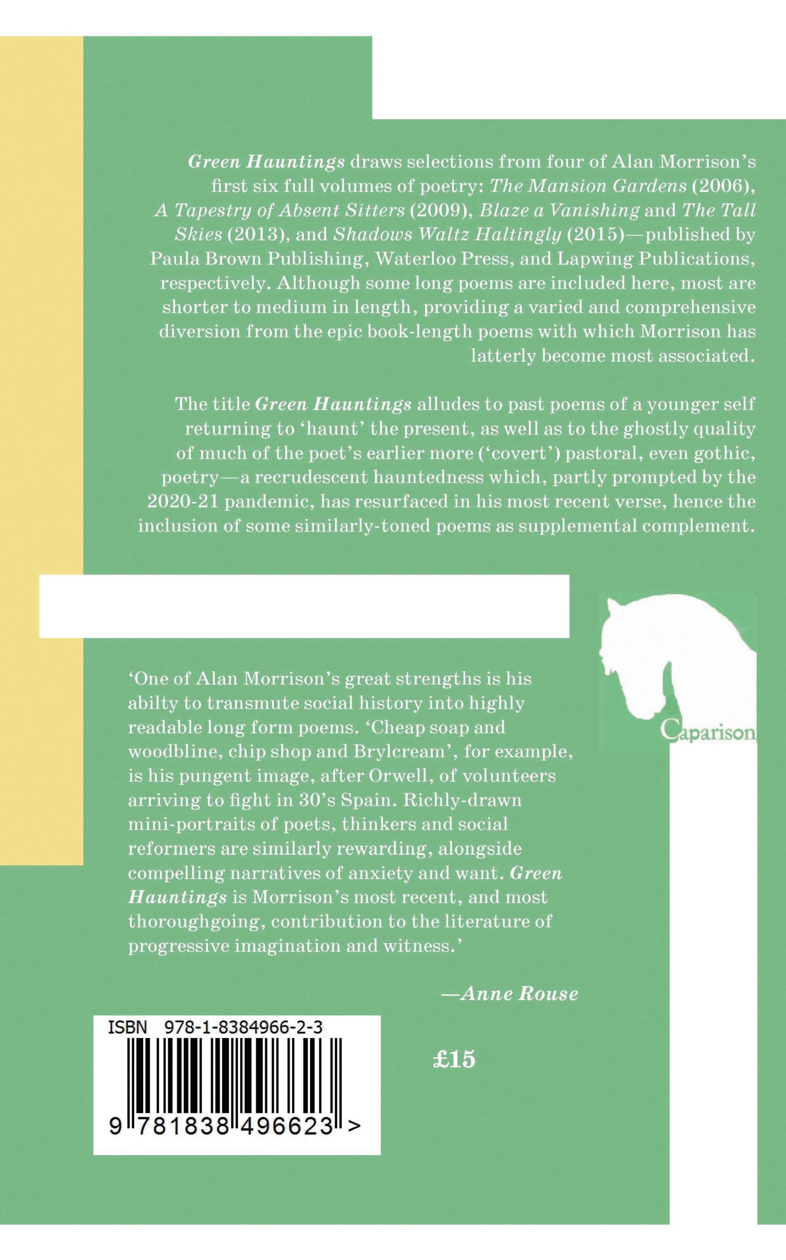 Selections from four of Alan Morrison’s first six full volumes of poetry: The Mansion Gardens (2006), A Tapestry of Absent Sitters (2009), Blaze a Vanishing and The Tall Skies (2013), and Shadows Waltz Haltingly (2015)—published by Paula Brown Publishing, Waterloo Press, and Lapwing Publications, respectively.