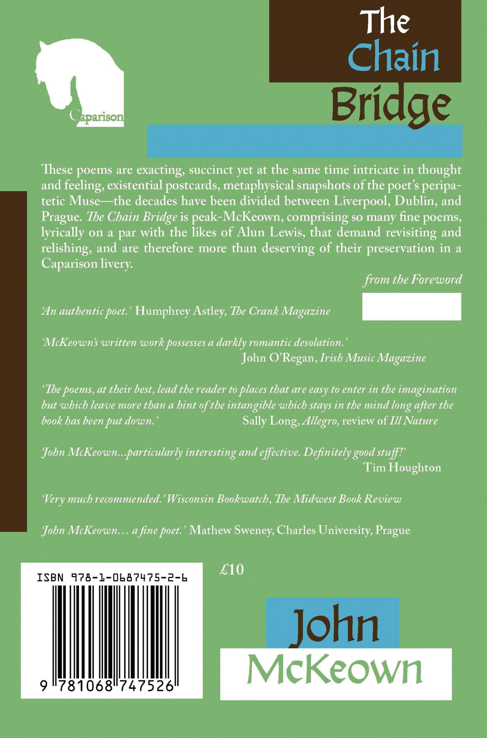 This stunning Caparison debut from veteran Liverpool-born, Prague-based poet John McKeown is his seventh volume, and arguably his best to date, lyrically rich and unobtrusively sublime.