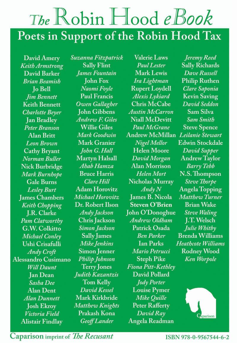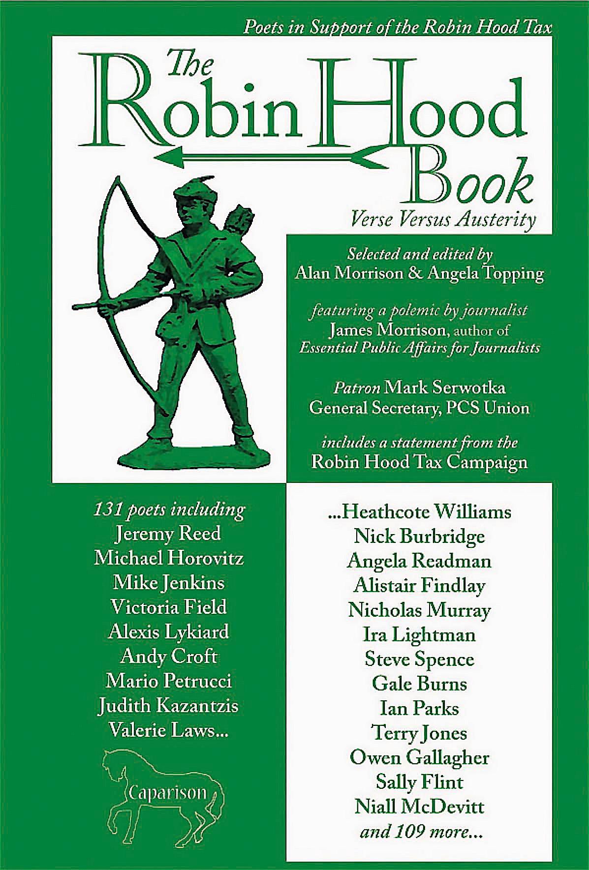 This is a big, important book, coming at a time when the national inclination is to boo George Osborne, to his great astonishment, at the Paralympic Games. Its rallying point is the campaign for a Robin Hood, or Tobin tax on financial transactions, and follows last year’s radical anthology, Emergency Verse. But, as editor Alan Morrison is happy to point out, inevitably its sweep is far wider than that, prompted by a “wide range of political convictions: socialists, communists, anti-capitalists, anarchists, Greens”, and its underlying ethic being defence of the welfare state. Interestingly, within its pages is also a polemic about the state of poetry in Britain today, which takes in last year’s big bust-up at the Poetry Society, and the Poetry Book Society’s acceptance of sponsorship from a hedge fund.